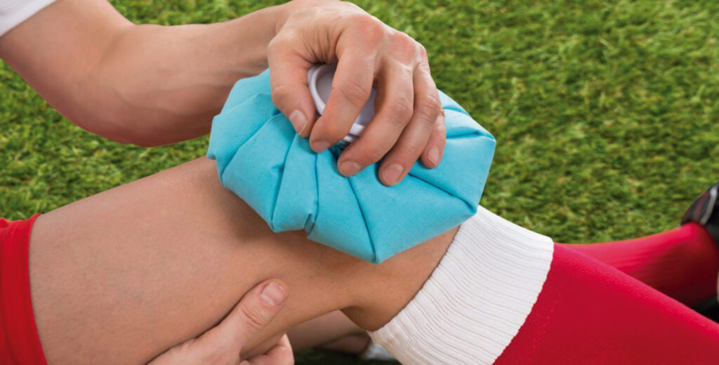Quando a região lesionada apresentar inchaço, uma compressa fria ou gelo pode ajudar a reduzir o inchaço da área em questão. Isso acontece porque o frio constringe os vasos sanguíneos, reduzindo o fluxo de sangue no local. Tal resultado faz com que não haja acúmulo líquidos, amenizando inflamações e possíveis inchaços e dando ao paciente um efeito analgésico..